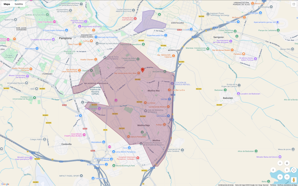 Estamos presentes en dos zonas, al norte y sur de Pamplona. Desde nuestro local del Soto salimos a los barrios del Soto de Lezkairu, Mutilva, Beloso Alto y segundo ensanche.